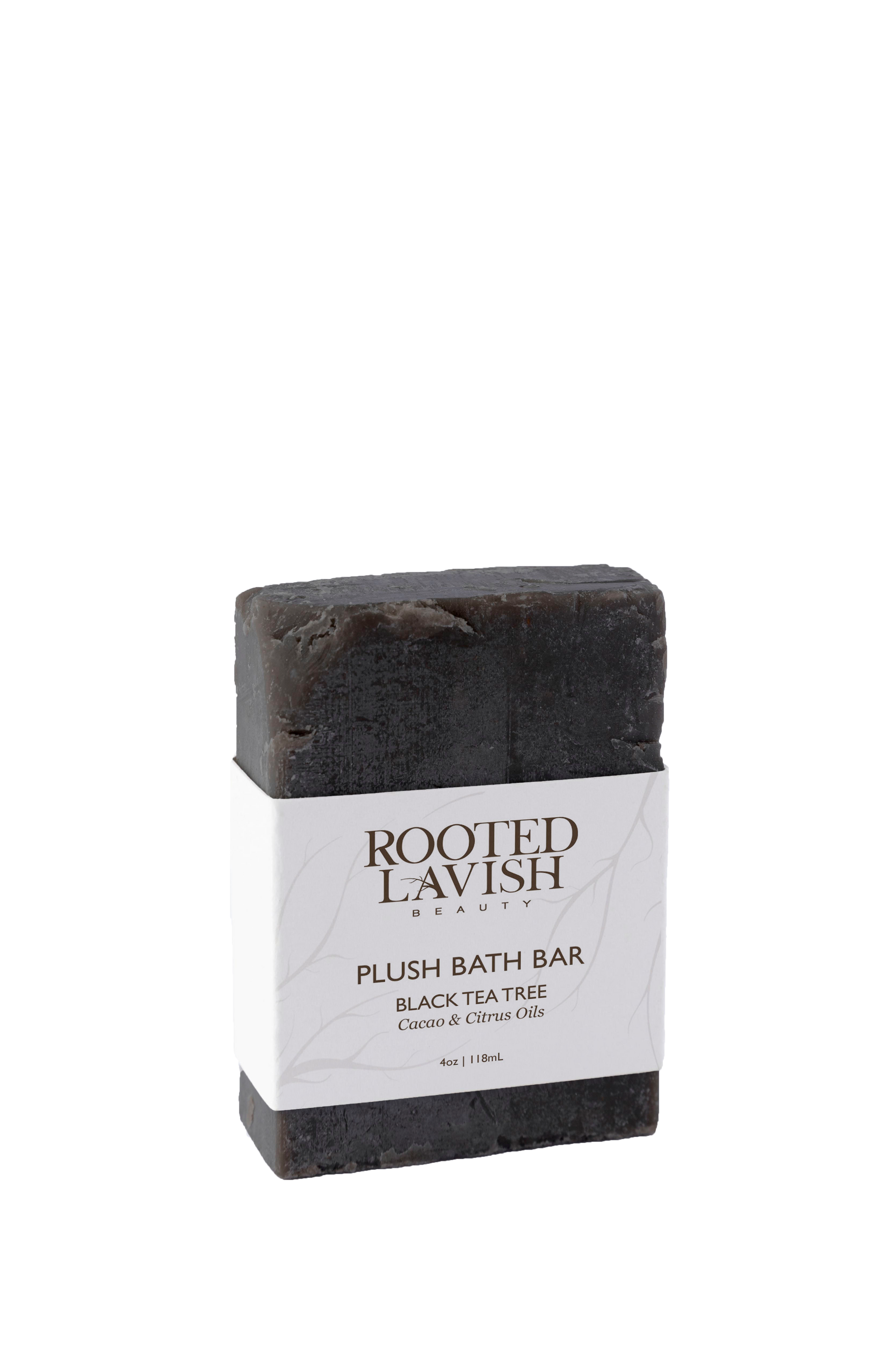 Rooted Lavish's Black Tea Tree bar is invigorating and fresh with a clean earthy scent. Black tea tree is Antibacterial and will help soothe itchy, scratchy, dry, or inflamed skin. Bathing in Black tea tree regularly diminishes bacteria causing odor. the antiseptic properties tea tree oil can help combat oily skin. It may also help reduce redness and swelling.